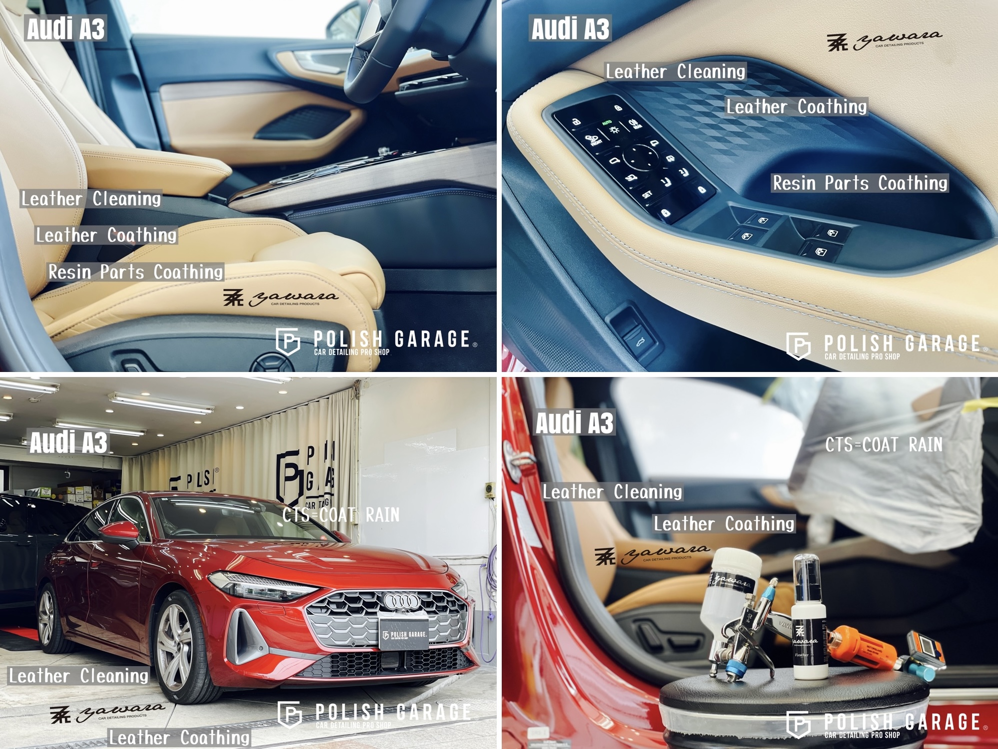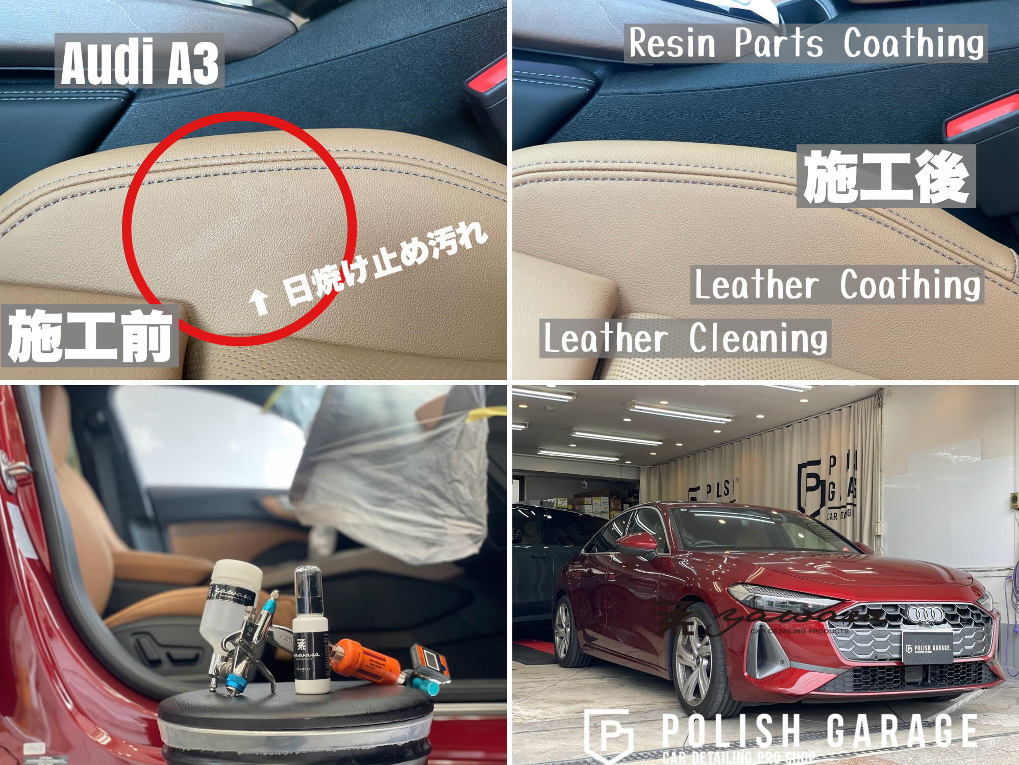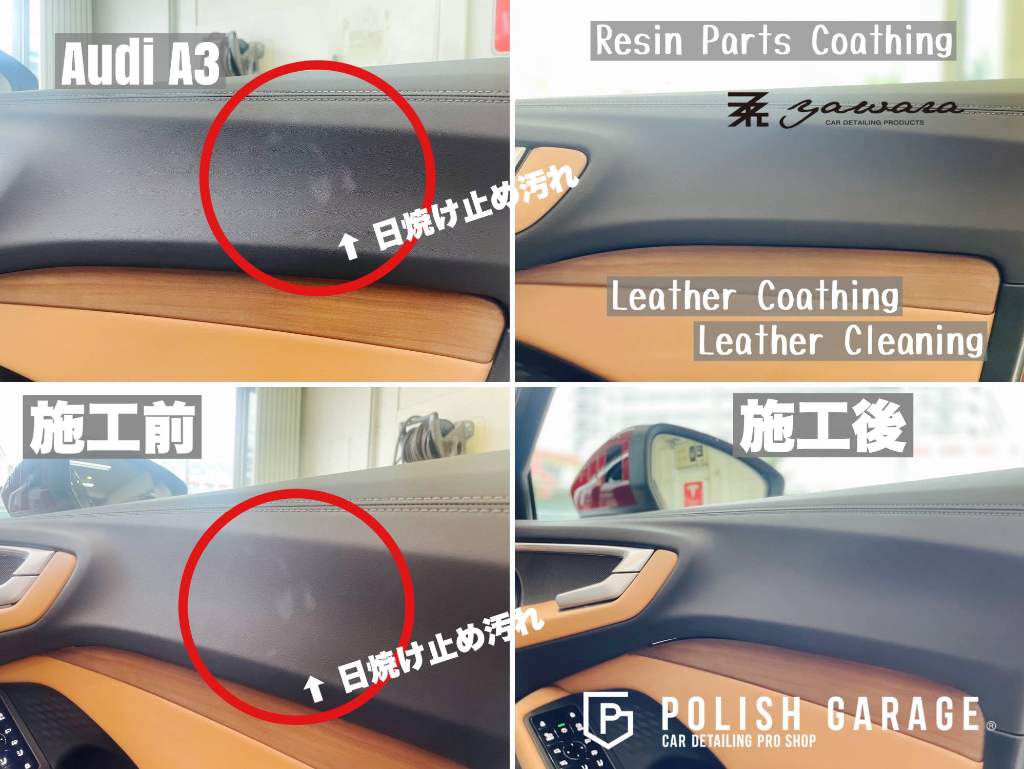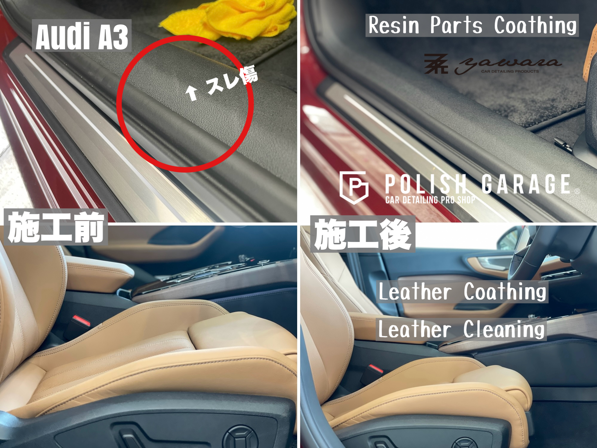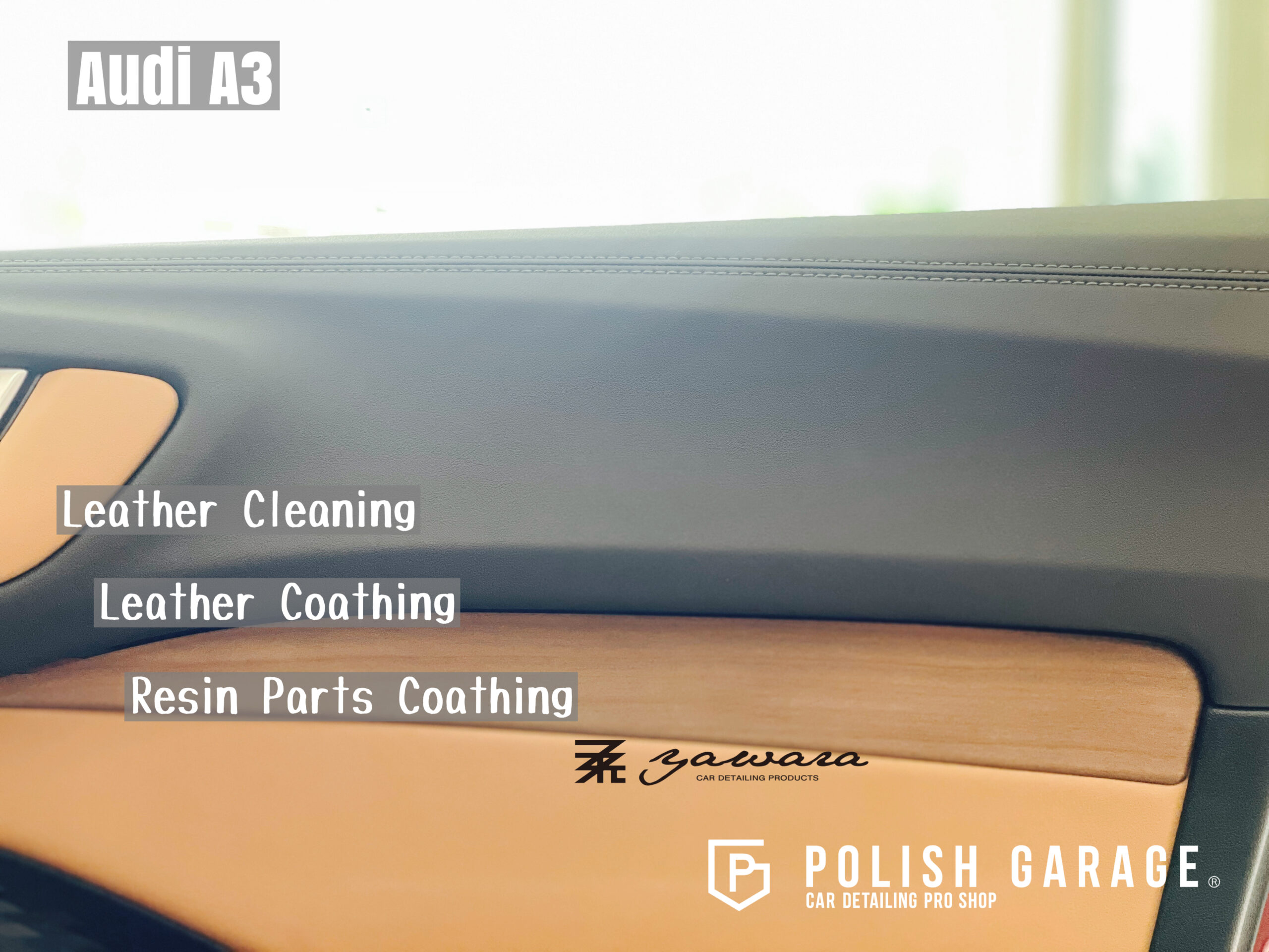【Audi A3】yawara革コーティング+樹脂パーツコーティング施工|名古屋 ポリッシュガレージ