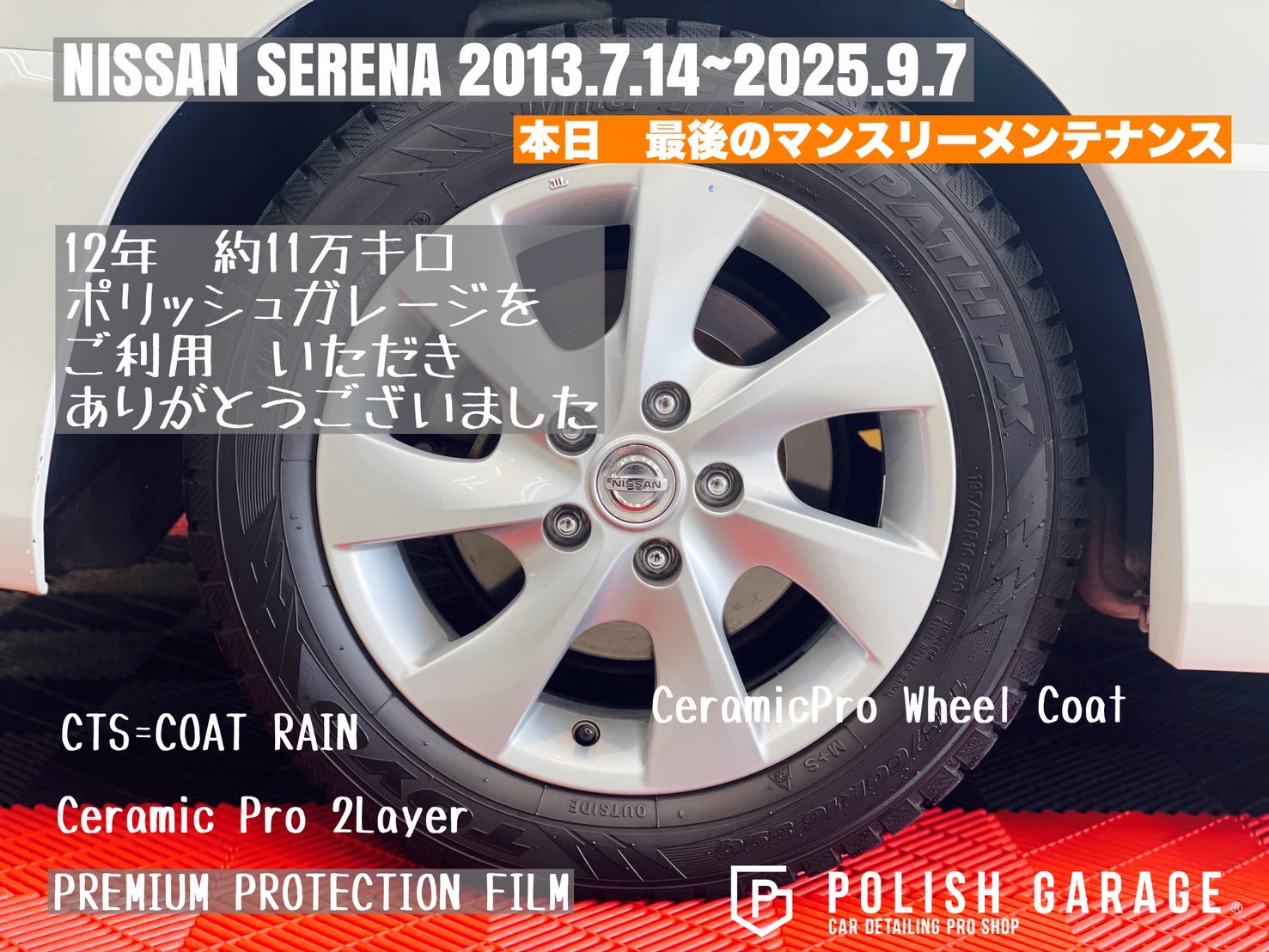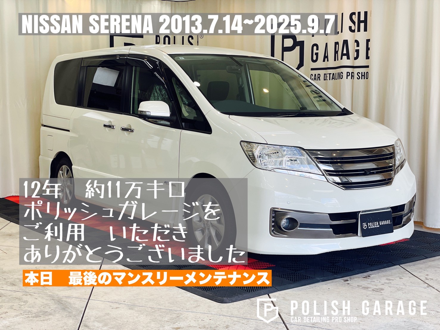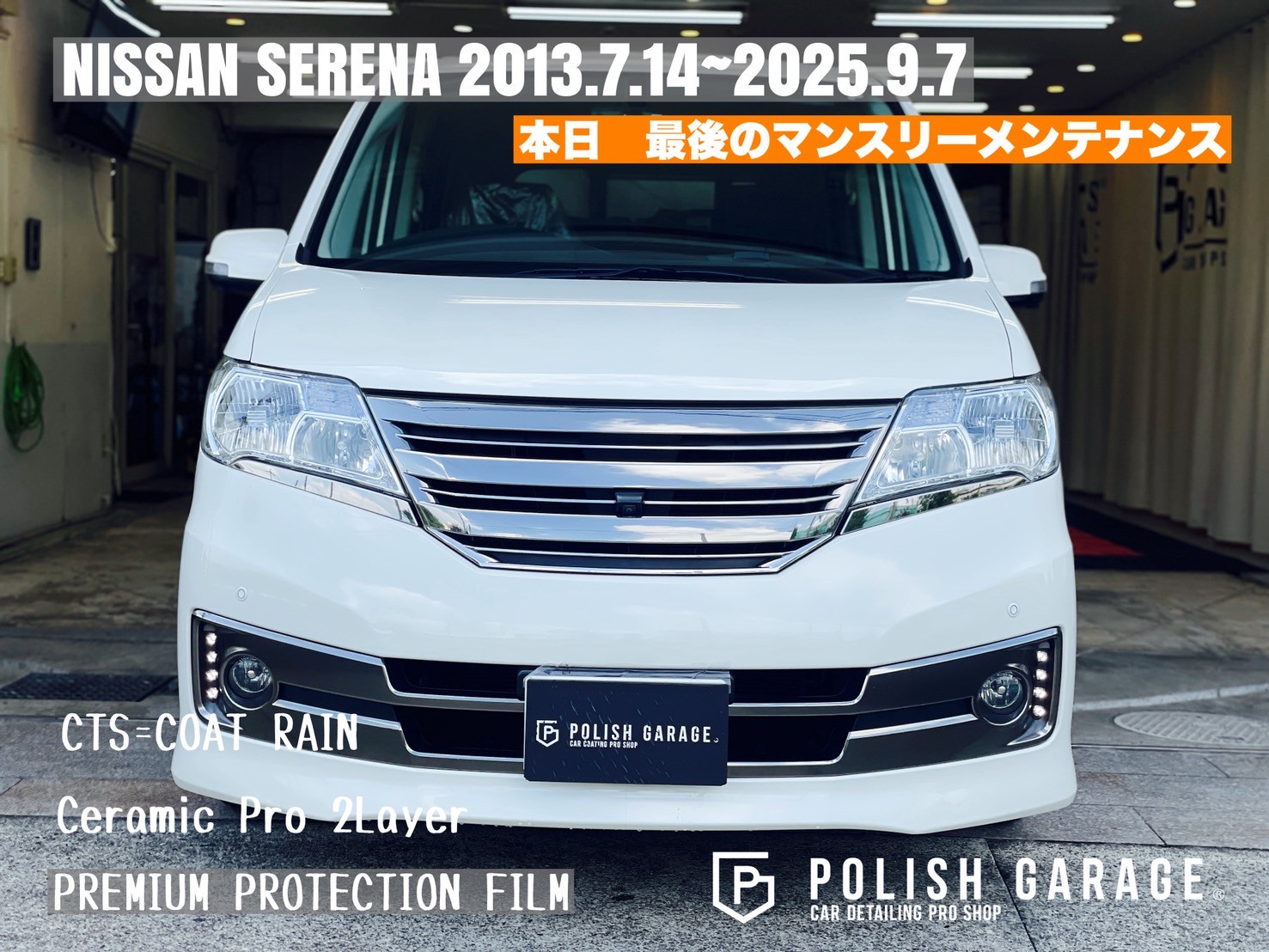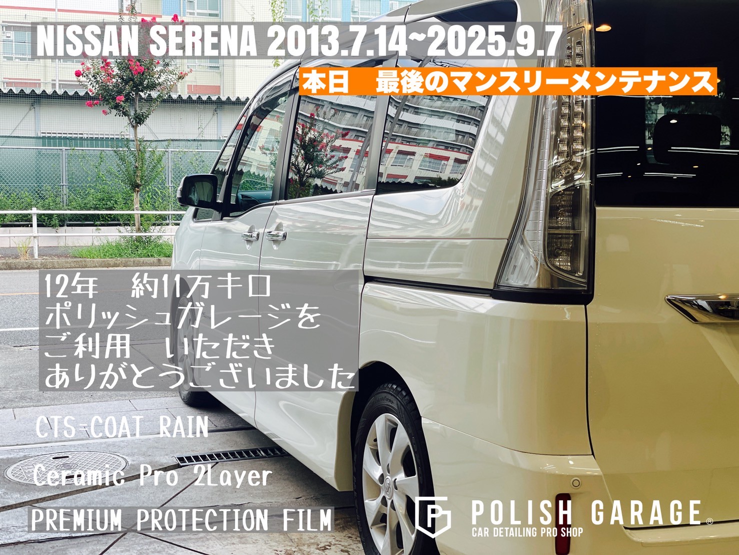 【NISSAN SERENA】セラミックコーティング&PPF施工から12年|最後のマンスリーメンテナンス|名古屋ポリッシュガレージ