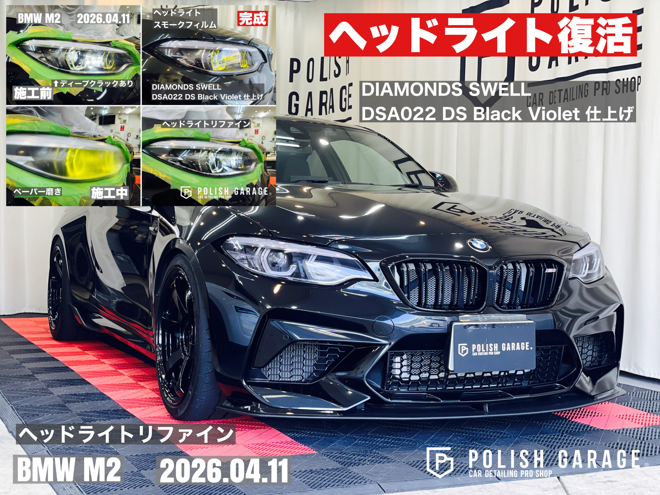 【BMW M2】ヘッドライトリファイン+スモークPPF施工|名古屋でディープクラック完全除去